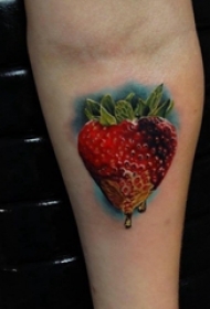 文艺手臂纹身 男生手臂上彩色的草莓纹身图片
