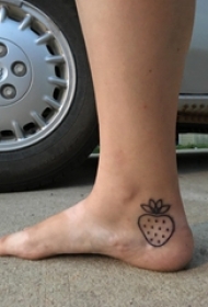 脚踝小清新纹身 女生脚踝上黑色的草莓纹身图片