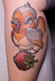 欧美小腿纹身 女生小腿上草莓和小鸟纹身图片