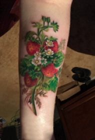 植物纹身 男生手臂上新鲜的草莓纹身图片