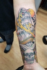 纹身小帆船 男生小臂上骷髅和帆船纹身图片
