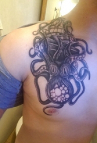 胸部纹身男 男生胸部帆船和章鱼纹身图片