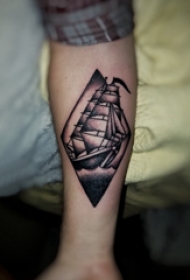 手臂纹身图片 男生手臂上菱形和帆船纹身图片