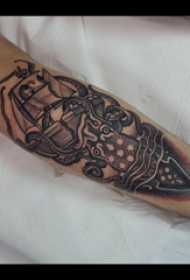 小动物纹身 男生小腿上帆船和章鱼纹身图片