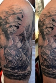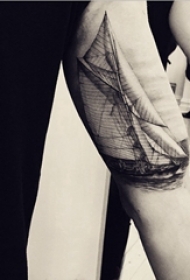 大臂纹身图 男生大臂上黑色的帆船纹身图片