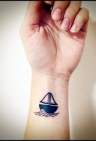 女生纹身手腕 女生手腕上黑色的帆船纹身图片