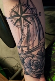 帆船纹身 男生手臂上帆船纹身指南针图片
