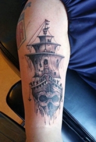 手臂纹身素材 男生手臂上海盗船和骷髅纹身图片