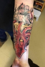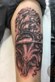 手臂纹身素材 男生手臂上章鱼和帆船纹身图片