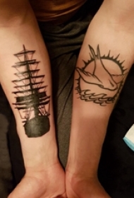 帆船纹身图片 男生手臂上帆船纹身黑色图片