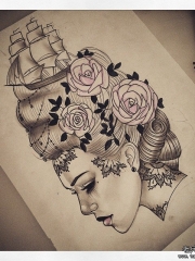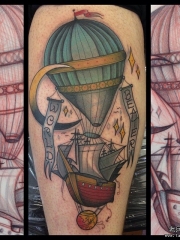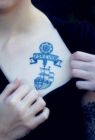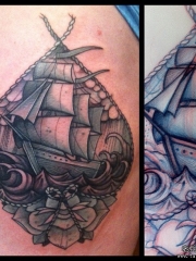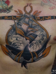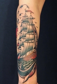 手臂上彩色纹身点刺技巧纹身小帆船花边纹身图片