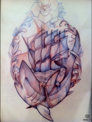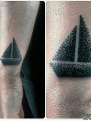 手臂上黑白纹身点刺技巧纹身小帆船鲨鱼纹身图片