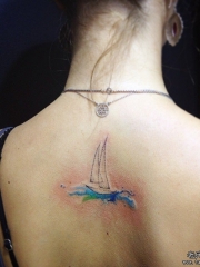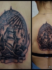 男生满背纹身线条灯塔纹身素材纹身小帆船图片