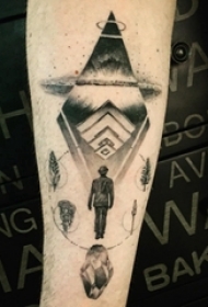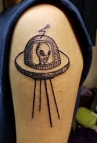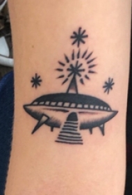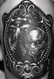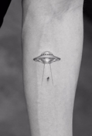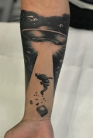 手臂纹身素材 男生手臂上黑色的人物和飞碟纹身图片