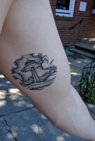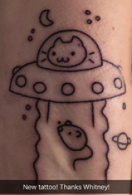 极简线条纹身 男生小腿上小动物和飞碟纹身图片