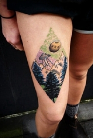 彩绘纹身 女生大腿上飞碟和风景纹身图片