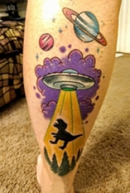 欧美小腿纹身 男生小腿上恐龙和飞碟纹身图片