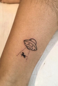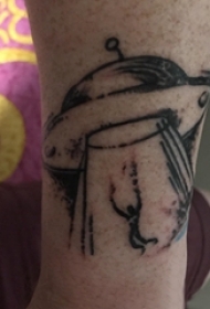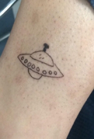 简单线条纹身 男生小腿上黑色的飞碟纹身图片