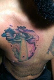纹身胸部男 男生胸部彩色的飞碟纹身图片