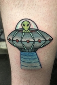 外星人纹身 男生小腿上飞碟和外星人纹身图片