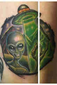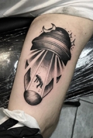 纹身大腿男 男生大腿上飞碟和外星人纹身图片