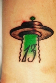 彩绘纹身 男生手臂上数字和飞碟纹身图片