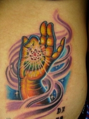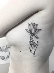 梵音袅袅,侧腰莲花与佛手纹身图案
