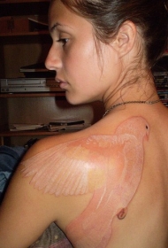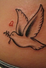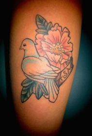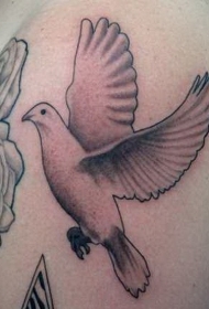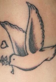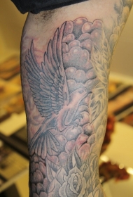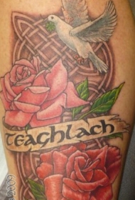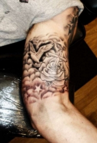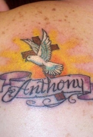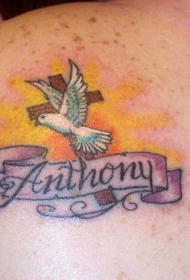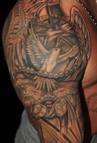 可爱的鸽子与十字架和玫瑰手臂纹身图案