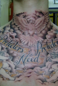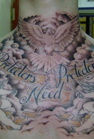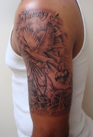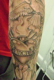 手臂祈祷之手和鸽子字母黑白纹身图案