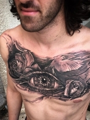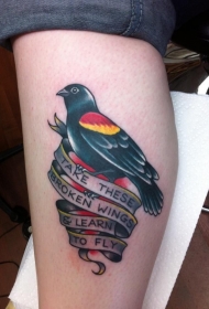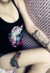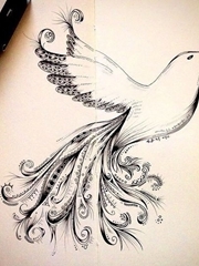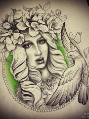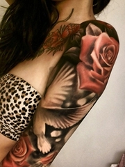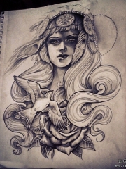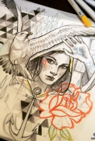 欧美school女郎鸽子玫瑰纹身图案手稿