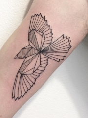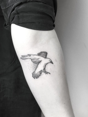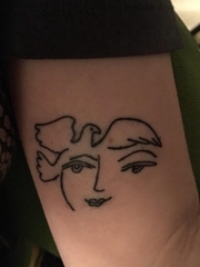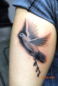 黑色手臂线条纹身笑脸面对和平鸽纹身图片