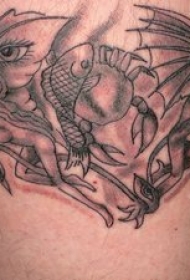 3张创意黑灰中世纪神秘怪兽纹身图案-墨西哥纹身师vanpire作品
