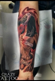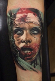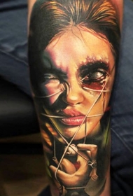 手臂现代恐怖电影主题怪物女人肖像纹身