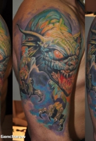 胳膊彩色恐怖风格邪恶的怪物纹身图案