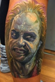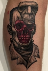 腿部彩色恐怖风格邪恶怪物肖像纹身图案