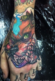 手背新风格彩色狼头怪物纹身图案