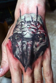 手背独特设计的怪物脸纹身图案