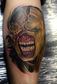 小腿恐怖风格彩色生化危机怪物纹身图案