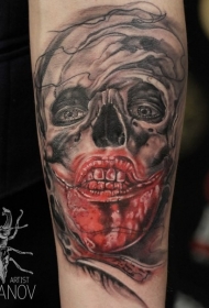 恐怖风格令人毛骨悚然的血腥怪物脸纹身图案