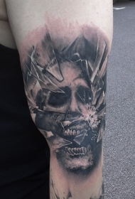 大臂令人毛骨悚然的黑色破碎玻璃与怪物脸纹身图案