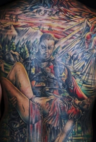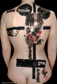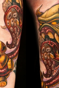 小腿可怕的怪物和玩具熊彩色纹身图案