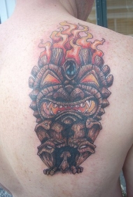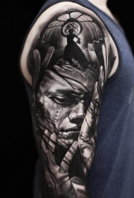 大臂令人毛骨悚然黑色男子怪物脸纹身图案
