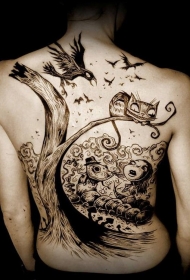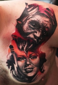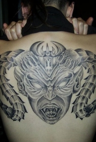 胸部雕刻风格黑色恶魔般的怪物纹身图案