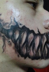 脸部恐怖电影风格黑色怪物牙齿纹身图案