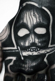 手背漫画风格黑色怪兽面具纹身图案