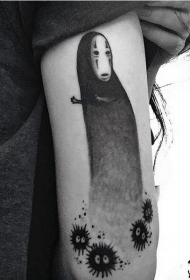 手臂漫画风格卡通无脸男和小煤球纹身图案