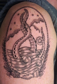 大臂old school黑色线条神秘的海怪纹身图案