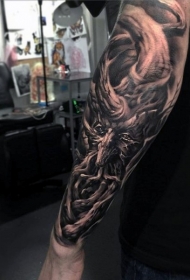 手臂精美的黑灰木制怪物纹身图案