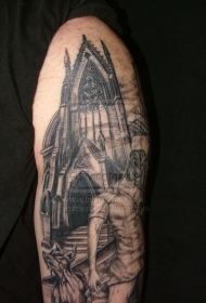 大臂黑色建筑怪物护士纹身图案
