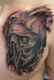 胸部有趣的黑色怪兽骷髅纹身图案